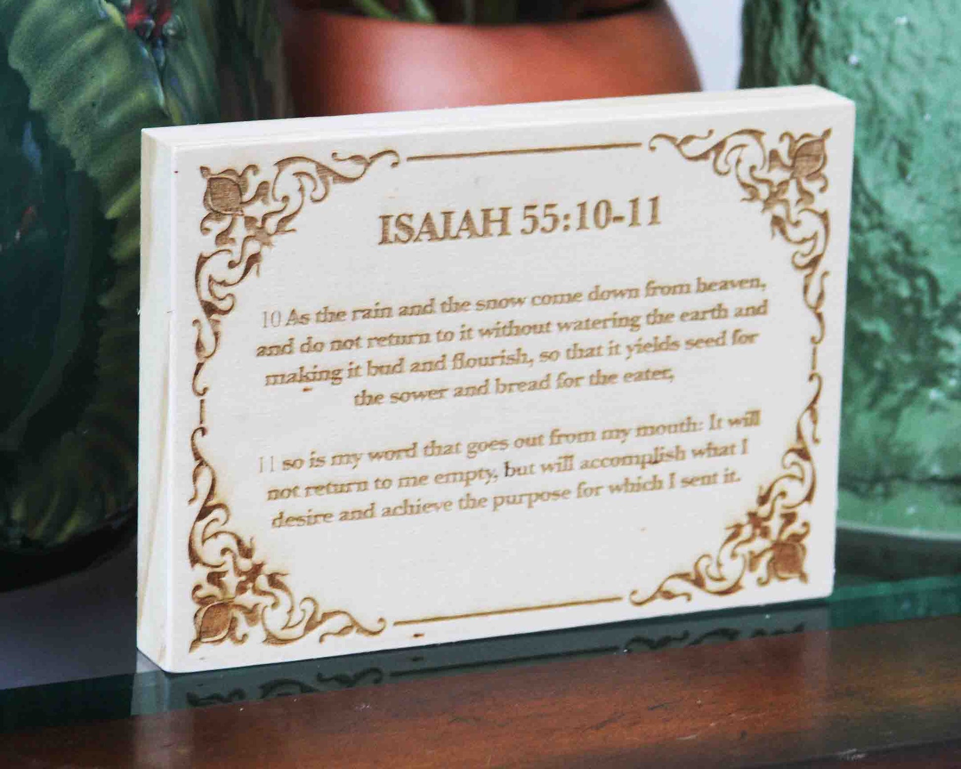 This scripture shows the power of God’s Word to fulfill His purpose unfailingly. Engraved in slate, it is a beautiful reminder of His promises that never fail.