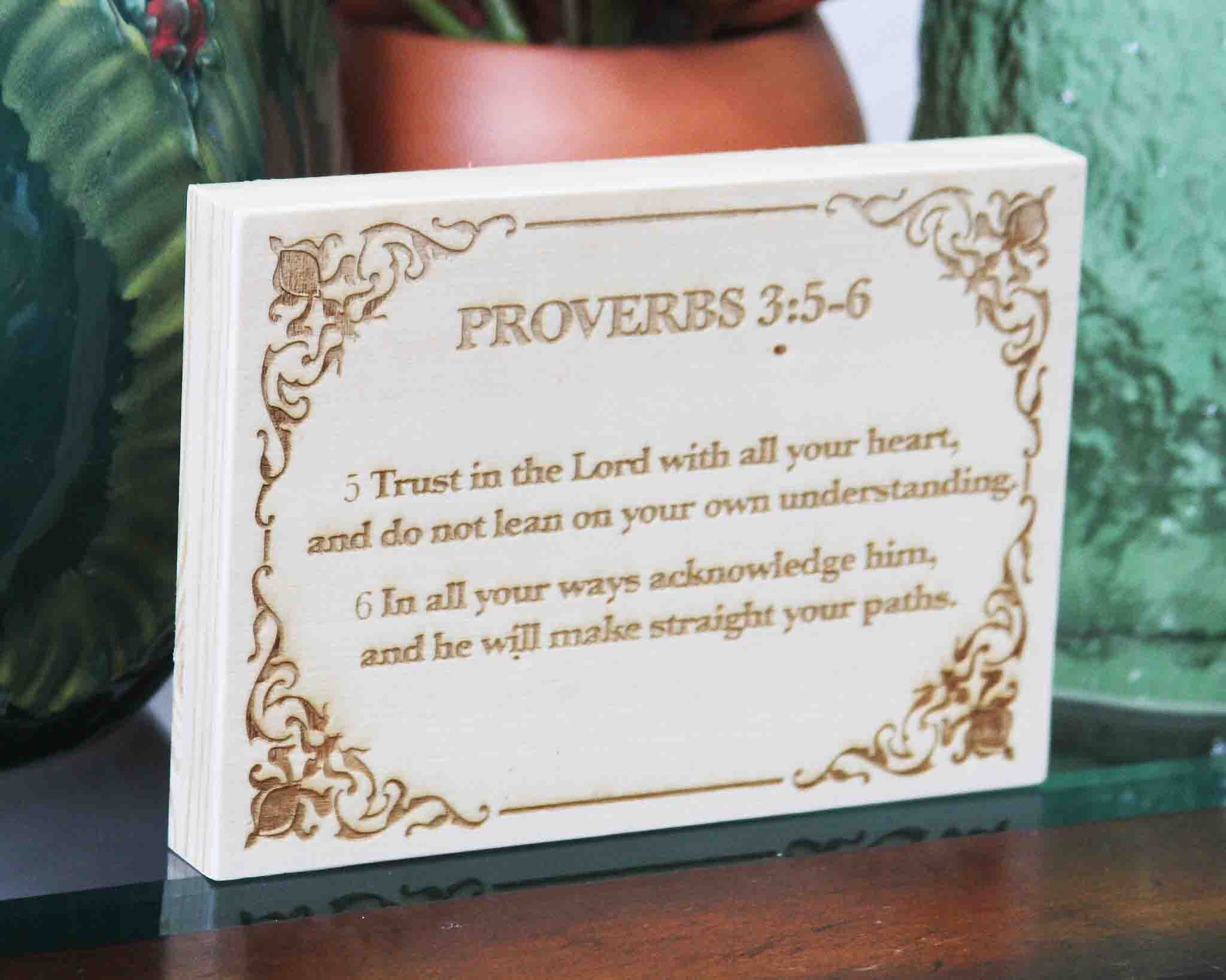 Proverbs 3:5–6, Engraved (5” x 7”) Wood Panel