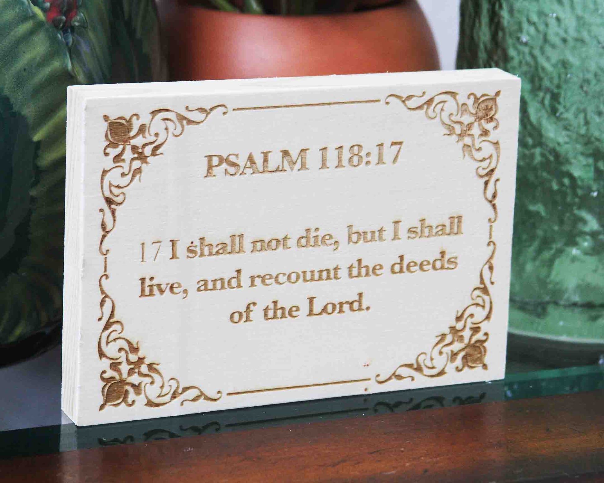Psalm 118:17, Engraved (5” x 7”) Wood Panel